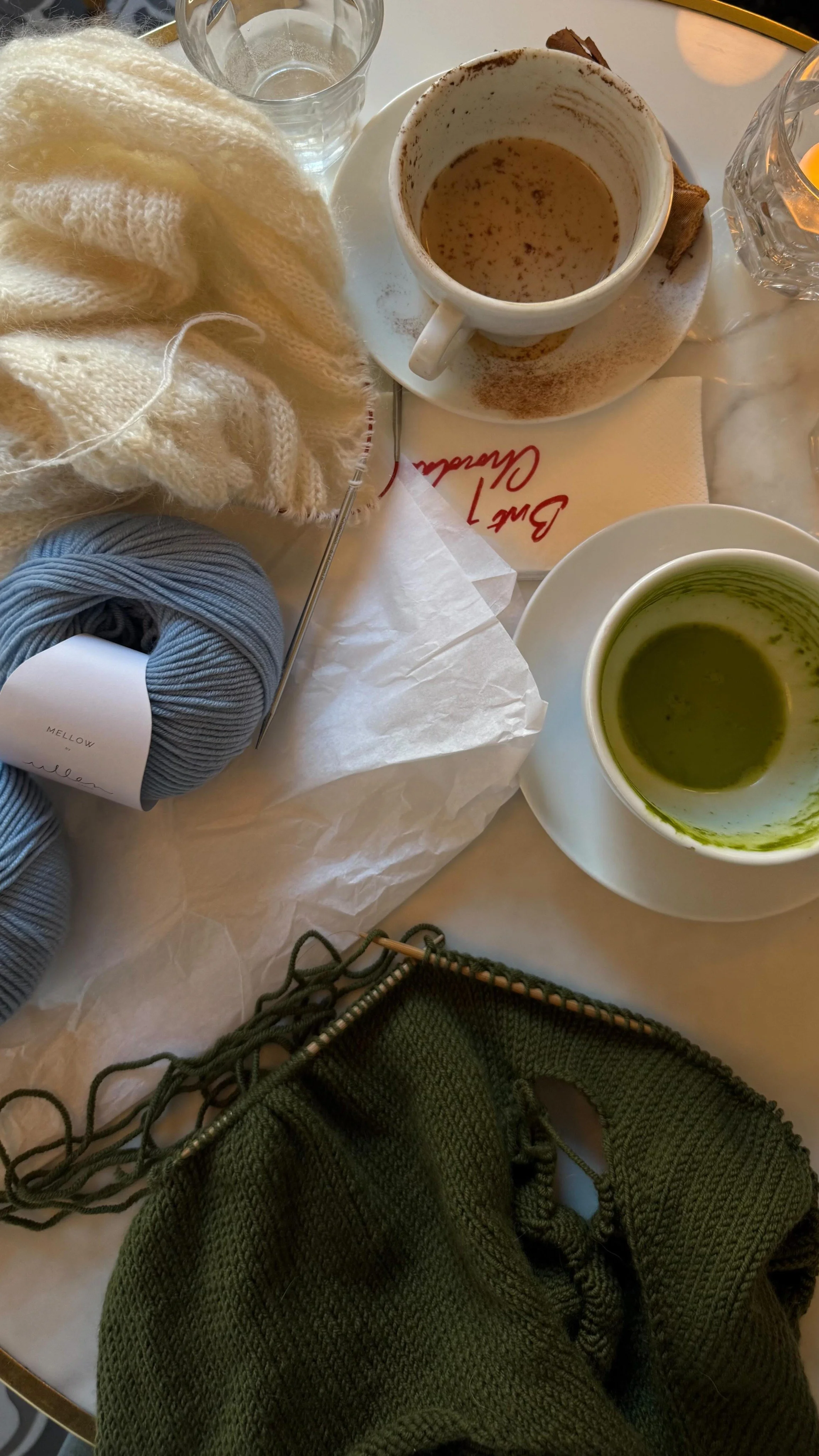 1 strand Heavy Merino (50 g = 125 m) and 1 strand Soft Silk Mohair (25 g = 225 m) held together, both by Knitting For Olive. 500 g and 150 g, respectively.