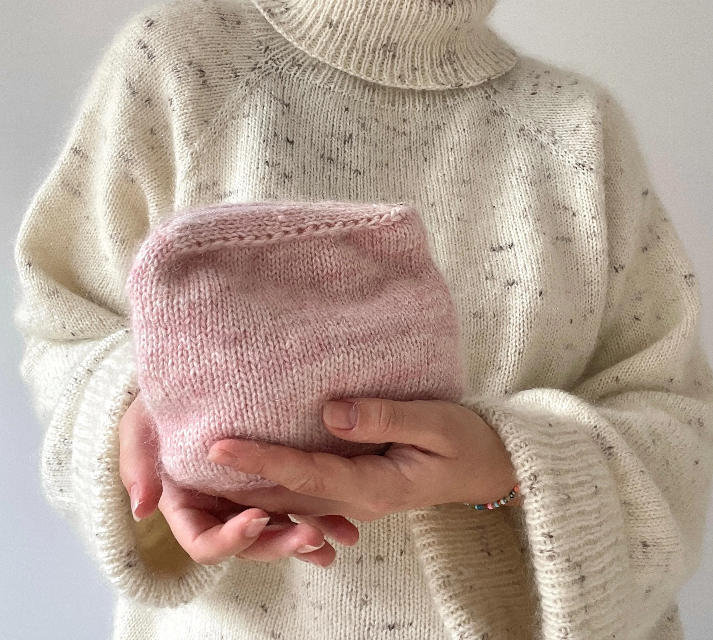 The waistband is knitted flat to your desired circumference, then joined using mattress stitch. It can be worked either wide or narrow. From there, stitches are picked up according to your cup size, and the bralette is worked in the round on circular needles. Each cup is shaped with gradual decreases up to the shoulders. Finally, the straps are knitted flat and seamlessly attached to the back.
